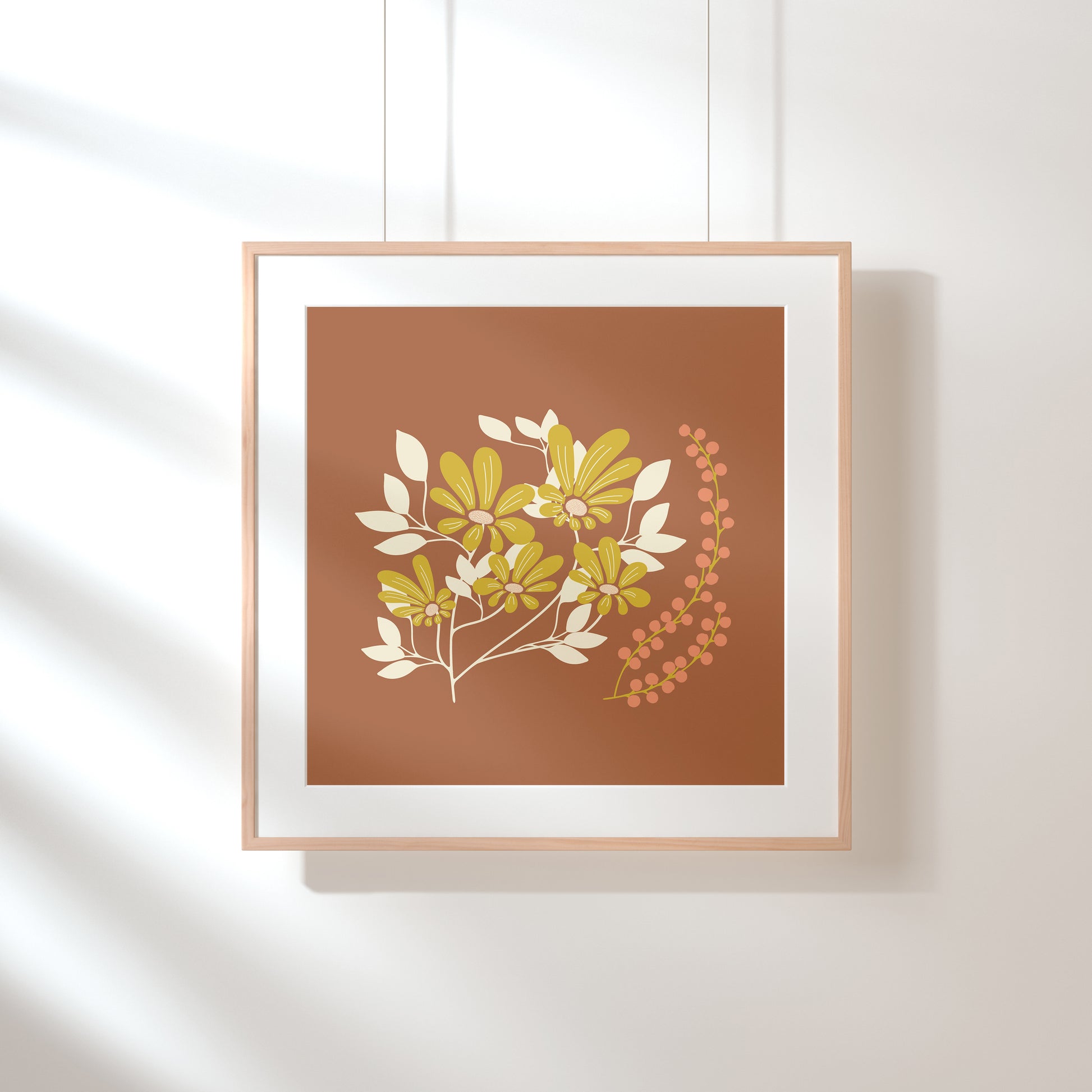 We've taken our tiled flower tea towel, simplified it into a single motif, reimagined its color palette and created a print! You can now download a digital file, print direct, and hang in your home!